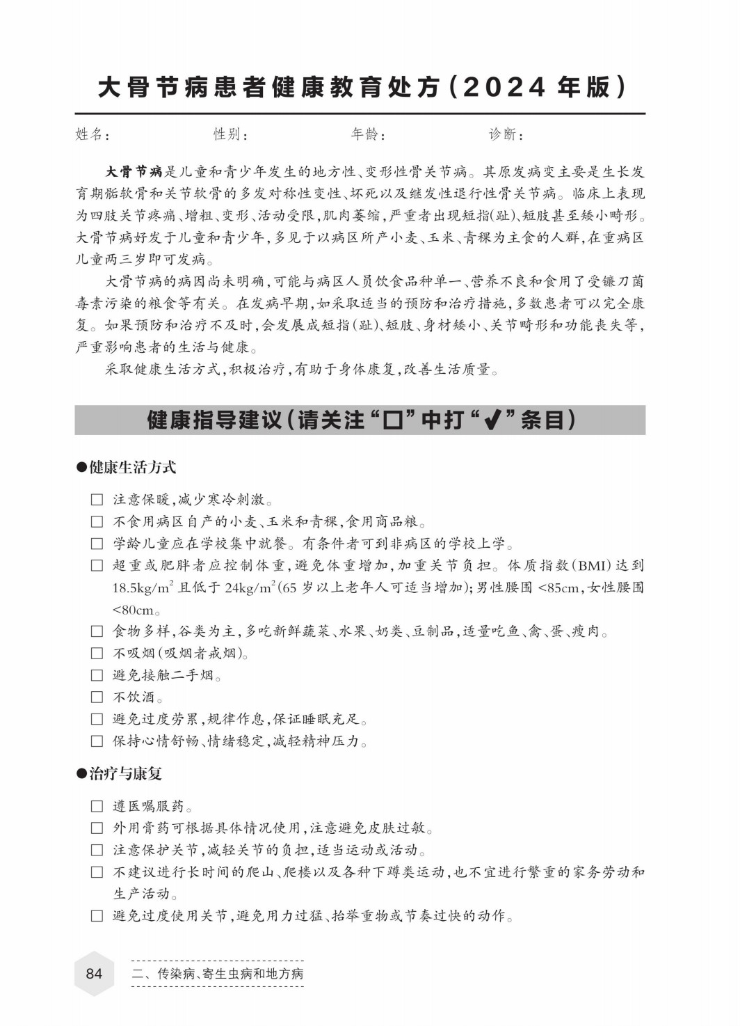 【地方病·传单】大骨节病患者健康教育处方(2024年版)