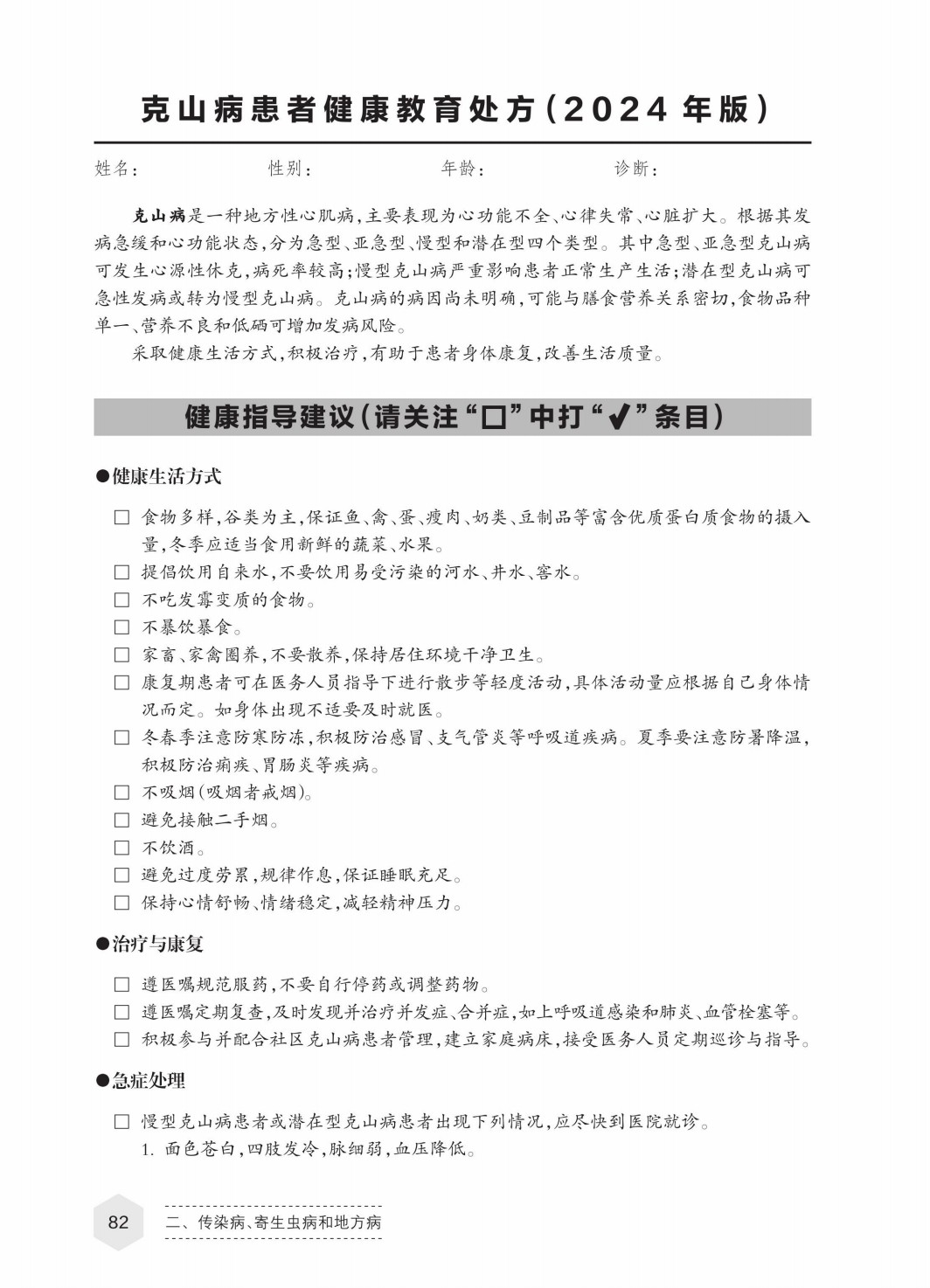 【地方病·传单】克山病患者健康教育处方(2024年版)