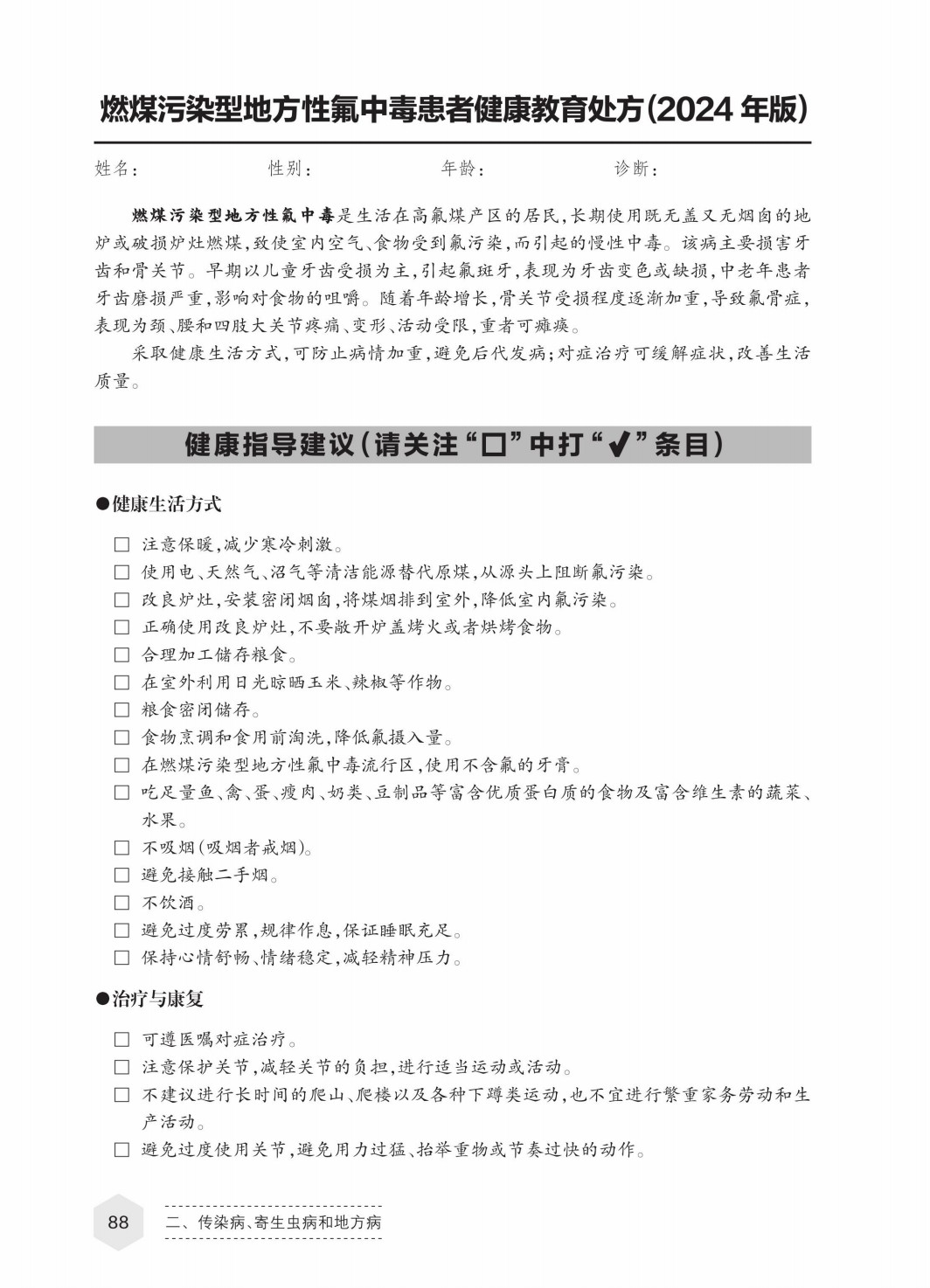 【地方病·传单】燃煤污染型地方性氟中毒患者健康教育处方(2024年版)
