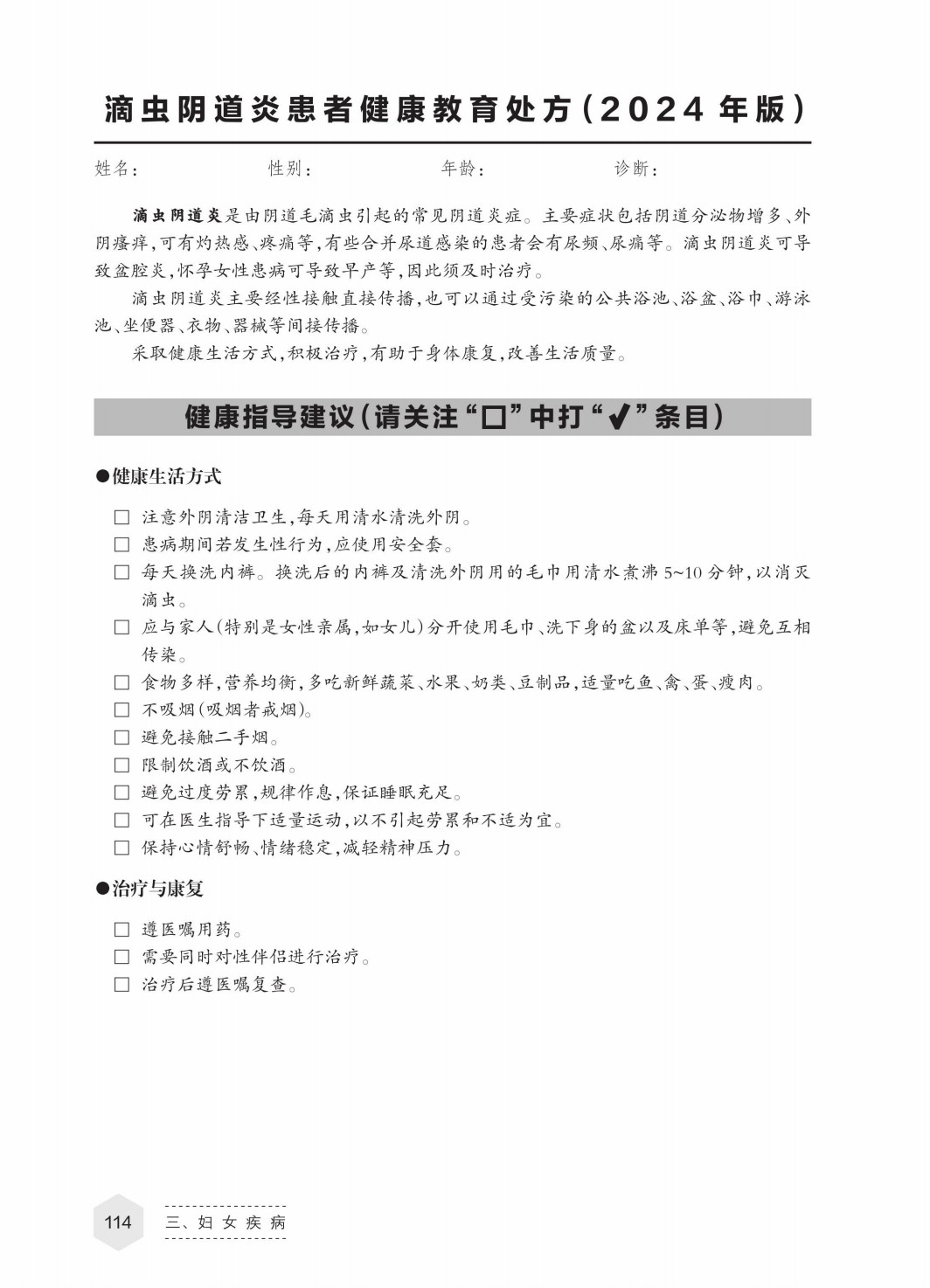 【妇女健康·传单】滴虫阴道炎患者健康教育处方(2024年版)