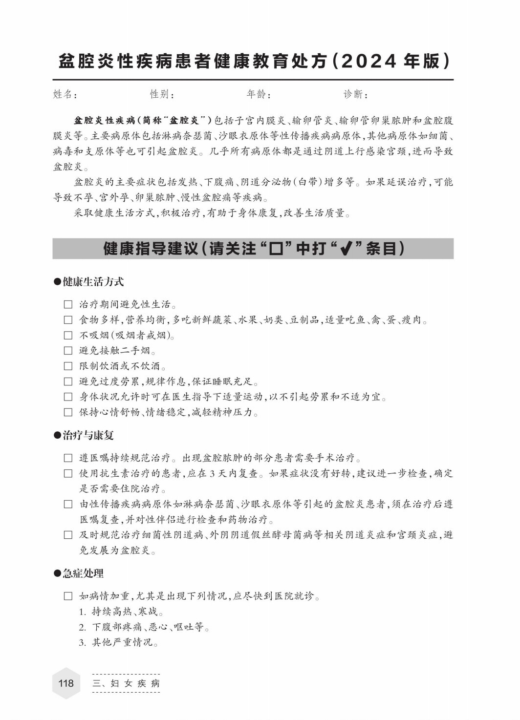 【妇女健康·传单】盆腔炎性疾病患者健康教育处方(2024年版)