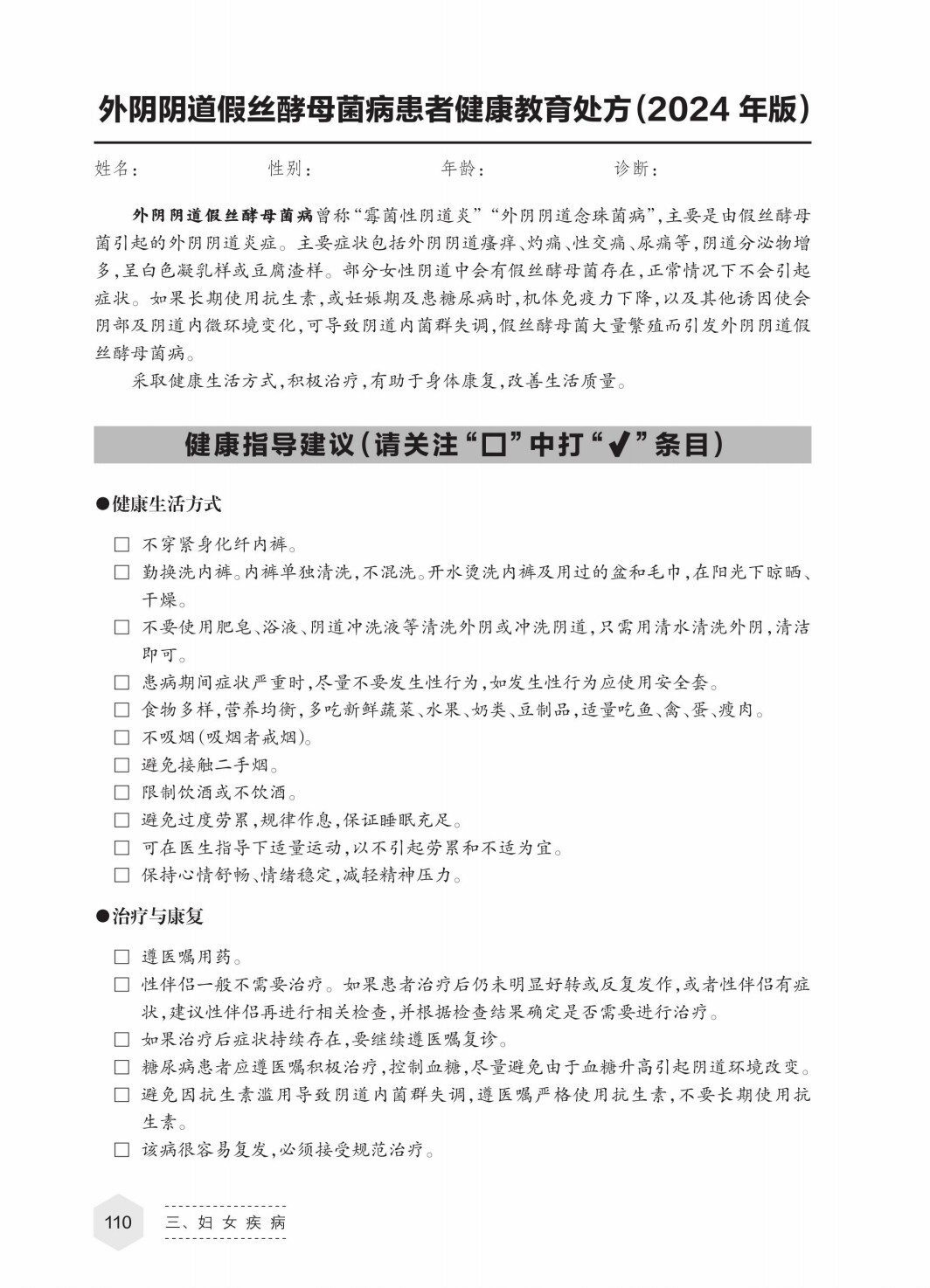 【妇女健康·传单】外阴阴道假丝酵母菌病患者健康教育处方(2024年版)
