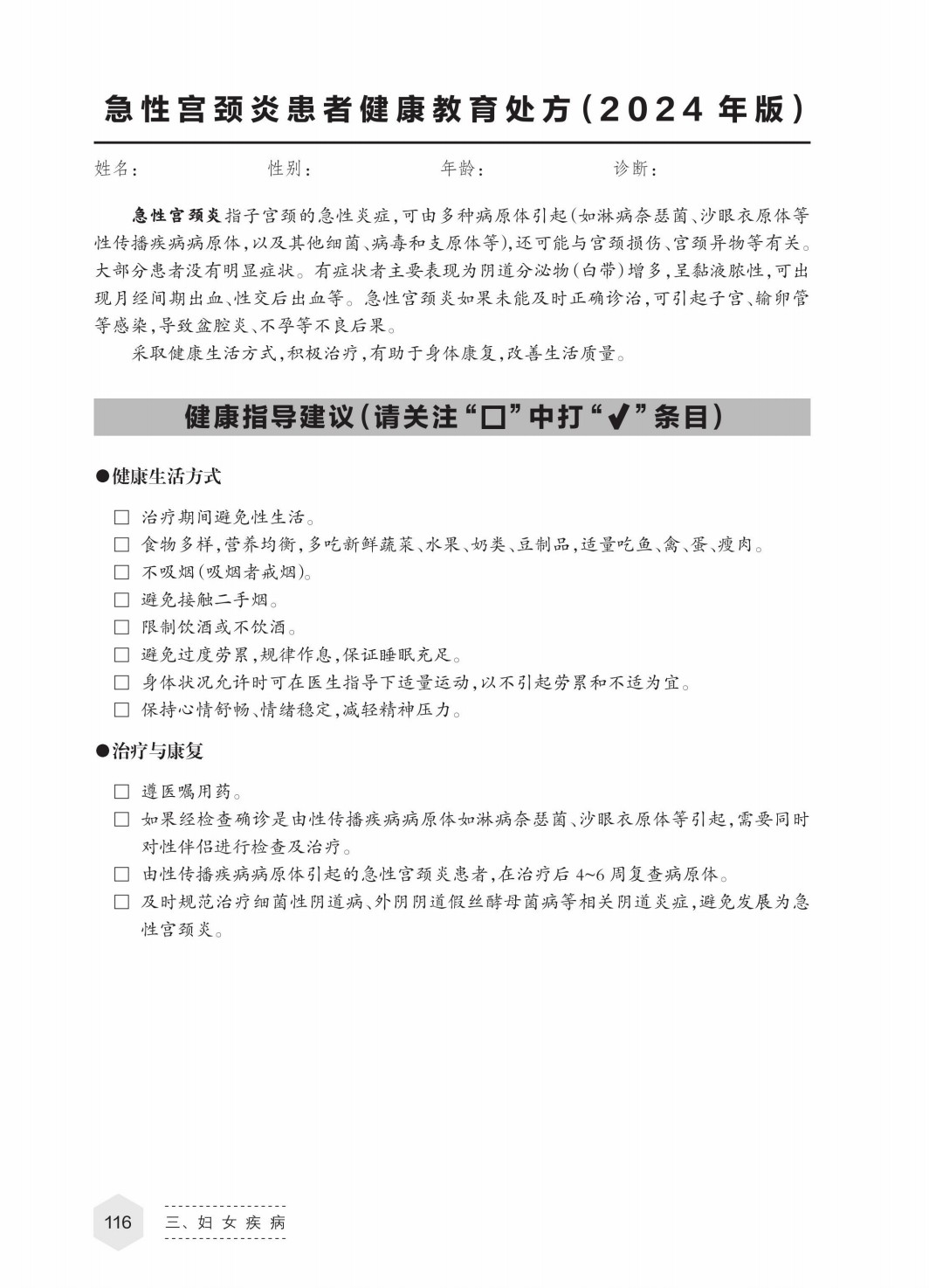 【妇女健康·传单】急性宫颈炎患者健康教育处方(2024年版)