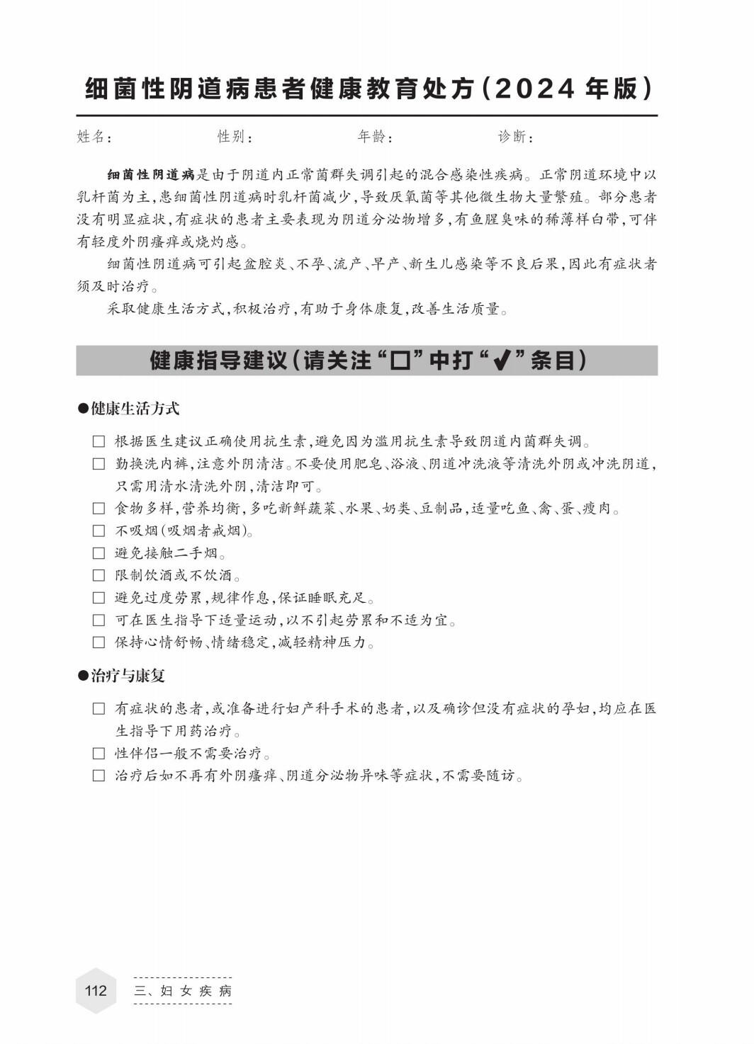 【妇女健康·传单】细菌性阴道病患者健康教育处方(2024年版)