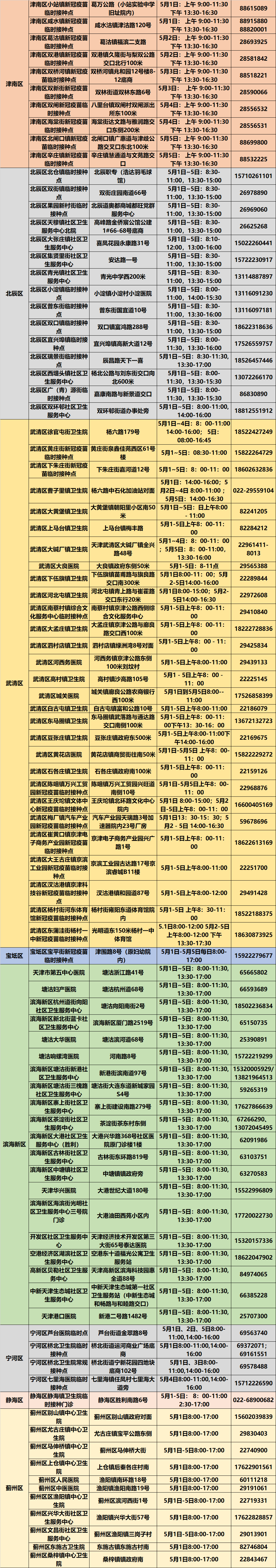 “五一”期间开展接种服务的新冠疫苗接种点名单