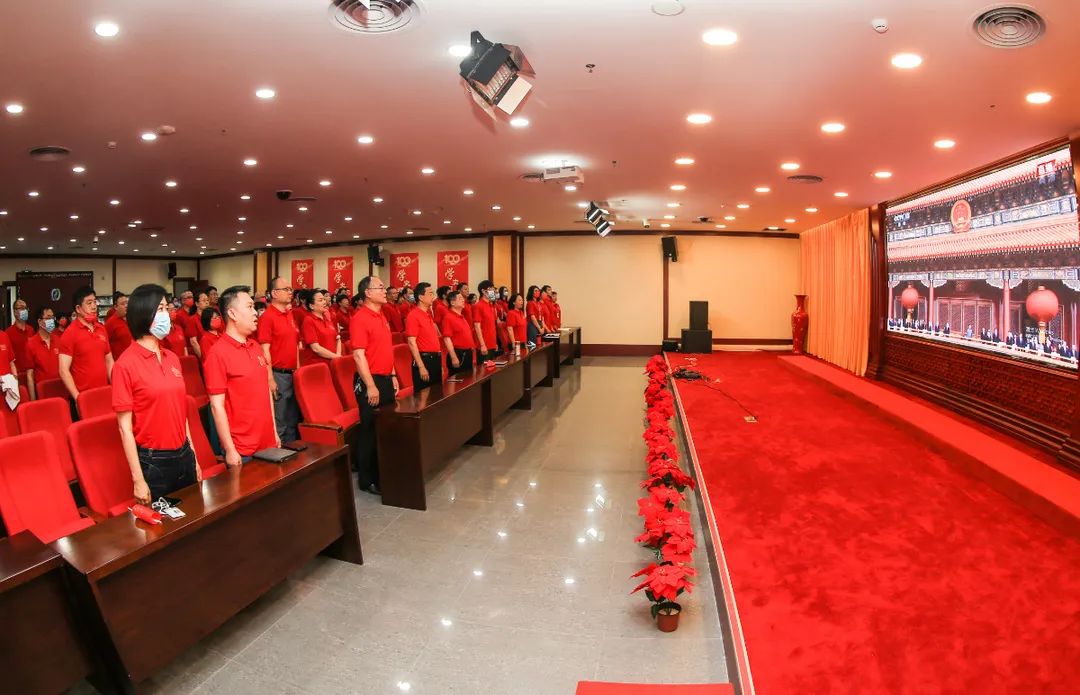 7月1日上午,天津市中医药研究院党政领导班子成员、中层干部、各级党组织书记、广大党员干部群众代表、民主党派代表等150余人统一着装,怀着激动的心情,认真收听收看庆祝中国共产党成立100周年大会盛况,聆听习近平总书记重要讲话。