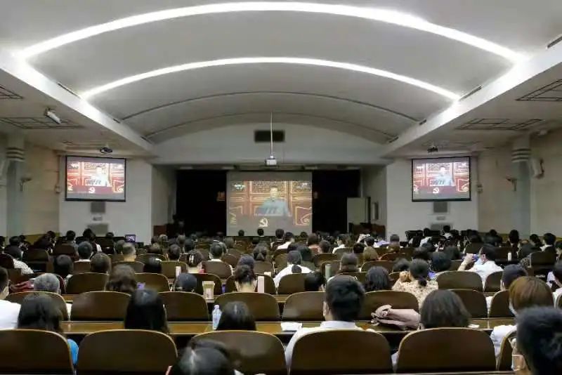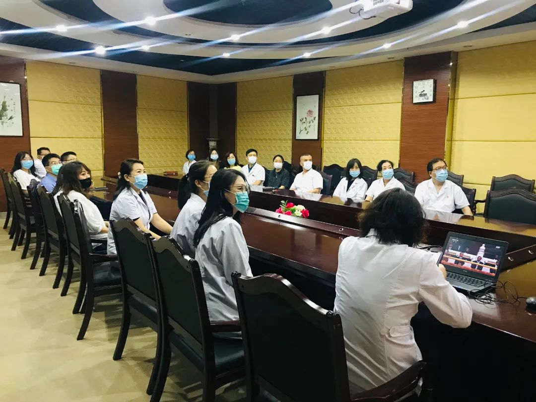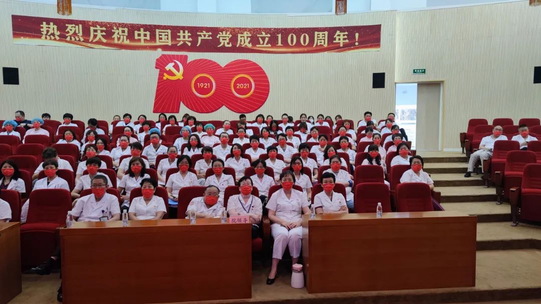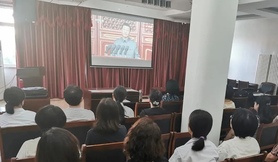 天津市口腔医院领导班子成员、所有支部书记、部分党员、民主党派人士、群众集中观看庆祝中国共产党成立100周年大会。