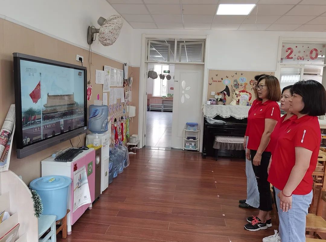 天津市和平保育院(卫健委幼儿园)根据实际工作时间,在保证日常工作和幼儿安全的基础上观看庆祝中国共产党成立100周年大会。