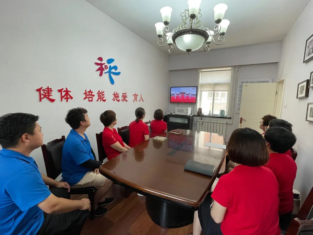 市儿童医院领导班子成员、中层干部在会议室集体观看庆祝大会,各党支部结合实际情况组织人员观看庆祝中国共产党成立100周年大会。