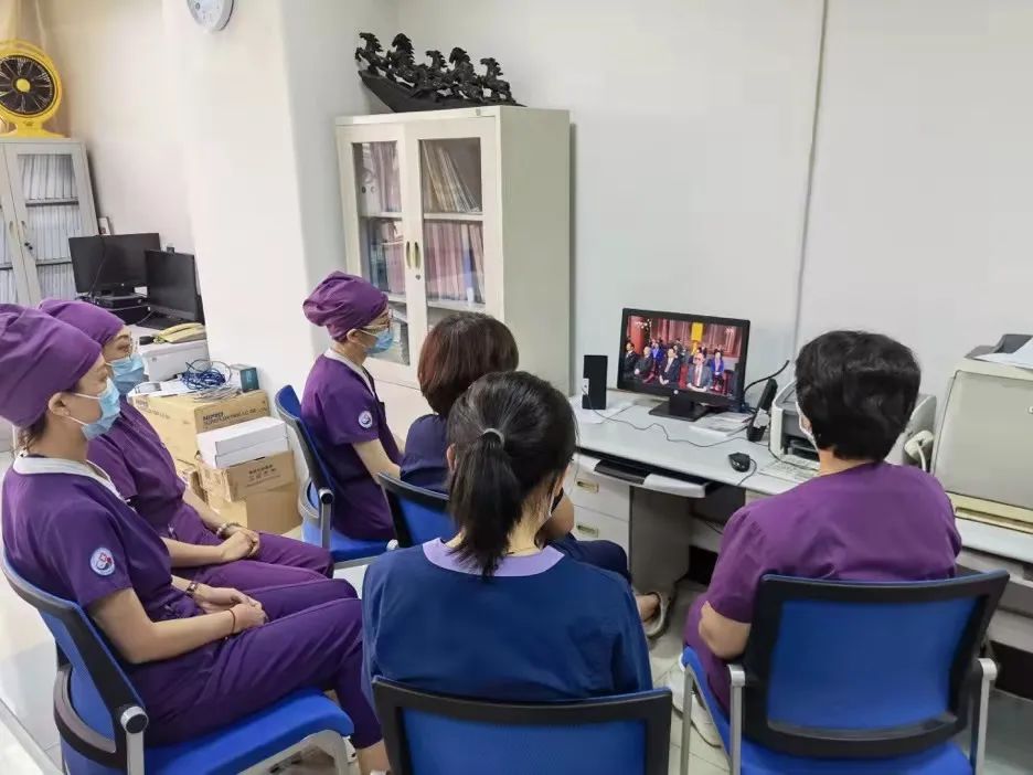 7月1日上午,市卫生健康系统直属各单位通过多种方式组织广大党员干部职工收听收看庆祝中国共产党成立100周年大会,认真聆听习近平总书记重要讲话。市党史学习教育巡回指导组成员、委领导班子成员、机关党员干部在机关会议中心集中观看大会直播。基层一线广大医护人员、离退休老同志通过支部学习或自学等形式观看了大会盛况。习近平总书记在庆祝大会上的重要讲话在广大医务工作人员中引发热烈反响。