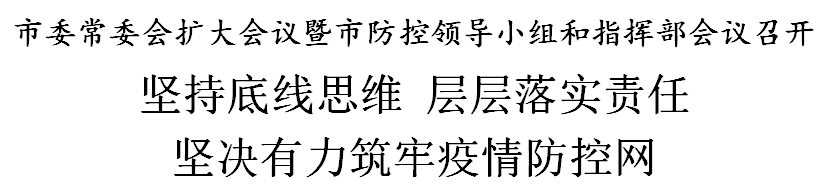 7月31日,市委常委会扩大会议暨市防控领导小组和指挥部会议召开,深入学习贯彻习近平总书记关于疫情防控的重要指示精神,贯彻落实党中央、国务院部署要求,分析当前疫情防控形势,研究部署我市疫情防控工作。市委书记、市防控领导小组组长李鸿忠主持并讲话,市委副书记、市长、市防控指挥部总指挥廖国勋,市人大常委会主任段春华出席。