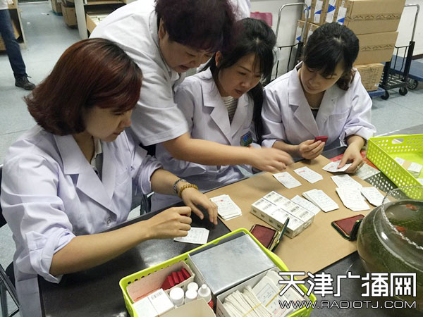 因为有技术和卫生要求,所以我们做的工作是给小药袋上加盖药物生产和截止日期,就是这样一个工作,我们三个主持人干一个小时的量也只够分装不到两千片、200袋左右的药。而药房大夫每周要分装的药片不会低于一万片,而这些工作都是大夫们利用休息时间做的。这半天的体验,我深感其实在很多大家看不到的地方,都有医生、医院对病人的付出。