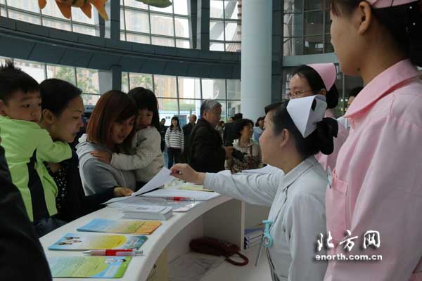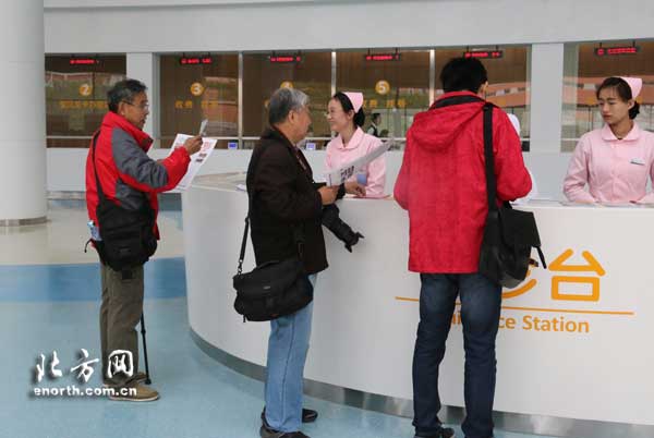 网友“laoqing”在导诊台一边拿着新院开诊信息,一边扫描医院的二维码。他告诉北方网新媒体记者:“今天来这里收获很大,不仅拍摄了整个就诊流程,还收集了医院为患者准备的《预约小常识》、《门诊就诊小常识》等资料,回去以后还可以给我身边的朋友看,告诉他们如何最快就诊。”