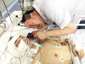 刚进医院,再次接到专家会诊的任务,这一次,需要他赶赴滨海。在港口医院等待他的,是一名爆炸中双眼被玻璃划破的市民,两只眼睛都需立即缝合,否则无法保证眼球的完整性。这一次,又是4个小时的手术,下手术台时已是转天凌晨4点。“一直不觉得累,下手术台时是如释重负的感觉。”张卫鹏说,患者的伤情不容医生休息,他也始终没感觉到累,只有走出手术室,才觉得腿有点儿飘。