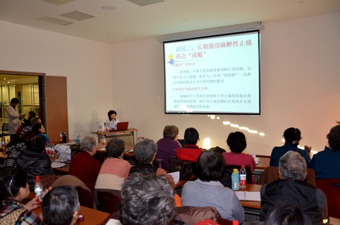 随后,孙一予主任医师作了以“肿瘤患者的福音--携手共创无痛世界“为题的讲座。针对目前肿瘤病人对癌痛认识不全面而导致对疼痛的控制不理想的情况,孙主任对疼痛治疗的基本原则进行了阐述,并对肿瘤科治疗疼痛特色中医治疗、神经丛阻断、心理治疗做了详细的介绍。针对目前抗击肿瘤的热点生物治疗和免疫治疗,张莹副主任医向患者家属介绍了目前日益精进的生物免疫疗法在肿瘤治疗中的新进展,并对CIK免疫治疗联合常规治疗在肿瘤治疗中价值进行详细讲述。随着肿瘤的微创治疗越来越被人接受与熟知,赵成副主任医师为结合典型病例介绍了肿瘤粒子植入术、肿瘤血管介入治疗和肿瘤深部热疗。微创治疗对患者创伤小,疗效好,在延长患者生存时间,提高生活质量方面显示了优势。最后科副主任李小江做了“科学防癌关爱生命“讲座。介绍了目前肿瘤防治现状及中西医结合防治肿瘤的优势,并着重介绍了靶向治疗,介绍了肿瘤科进行的靶向联合中医药治疗的临床试验成果。