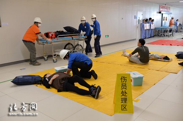 “快速检伤分类,及时抢救危重伤员。”一场灾害抢救在天津医大总医院空港医院进行。这不是真实的灾害抢救,而是一场模拟医学救援演练。