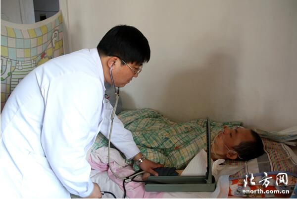 3月30日中午,劝业场街社区卫生服务中心医生段大棚利用自己的休息时间来到社区居民孙岩家中,为他进行随访检查。今年51岁的孙岩从2012年起因糖尿病并发症卧床。“自从他卧床开始,就插上了胃管和尿管,这两项都需要每月进行更换。由于他不能行动,所以只能我们自己找医生到家里来操作,长年下来是一笔不小的挑费。”孙岩生病后,专心在家照顾丈夫的妻子马小红告诉“前沿”新闻记者。现在,丈夫的签约医生段大棚医生不仅每月都会来到家中为他换尿管、胃管,遇到紧急情况马小红还可以随时拨打大夫的电话,寻求帮助。