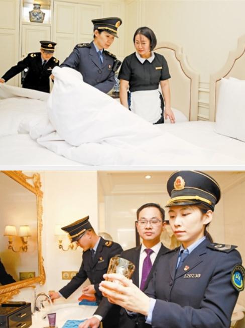 昨天,市卫生计生综合监督所的执法人员对本市部分宾馆酒店进行卫生监督检查。执法人员对公共用品用具储藏间、公用茶具的清洗消毒、公共用品用具更换保洁等情况进行了重点检查。