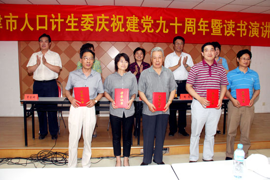 为庆祝中国共产党建党90周年,6月16日下午,市人口计生委召开委系统庆祝建党九十周年暨读书演讲会。会议对委系统4个先进党支部、12名优秀共产党员和4名优秀党务工作者进行了表彰。会上,九名同志围绕“颂扬党的光辉历史,讴歌时代主旋律”这一主题,进行了精彩的演讲,抒发了对党、对祖国、对人民、对社会主义和敬业爱岗的深厚情怀,充分展现了全委系统党员干部积极向上、与时俱进,朝气蓬勃的精神面貌。