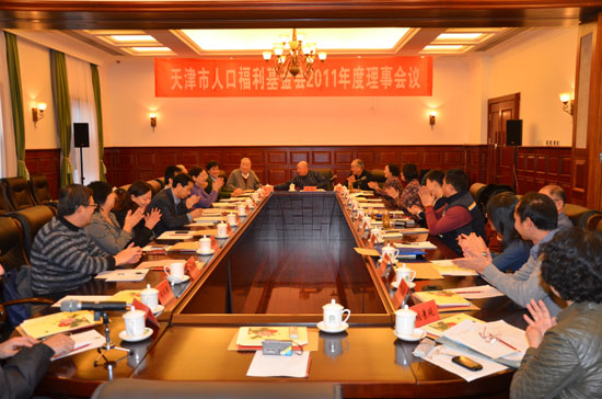 ,天津市人口福利基金会在市政协俱乐部召开理事会,基金会名誉会长吴振、基金会监事石坚、基金会理事长李长兴出席会议,出席会议的领导还有市人口计生委主任、党组书记张丽娟,来自各有关单位的理事。基金会副理事长兼秘书长做工作报告。会议审议并通过了基金会2011年度工作报告,通过了调整、增补理事、监事的决议。