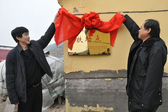 区计划生育协会副会长董世全同志与沙窝萝卜协会领导李国建同志现场挂牌