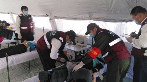 此次演练,天津市卫生计生委共派出市急救中心院前急救队、市人民医院国家紧急医学救援队、市第四中心紧急医学救援队以及市疾控中心、市卫生监督所、市安定医院等各专业参演人员共94人,出动车载医院及其他专业车辆共计31部,携带卫生应急处置工作所需的药品、医疗卫生器械和卫生应急保障物资,在做好队伍自我野外生存保障的同时,也在本次演练中出色完成了突发事件的卫生应急响应;三地联合卫生应急队伍紧急拉动和快速集结;队伍营地和工作平台搭建及后勤保障;现场检伤分类和现场急救治疗;三地联合救治、空地立体化转运衔接;灾后传染病疫情防控与心理干预;水源环境和饮用水快速检测;病媒生物灭杀等多个科目的演练。