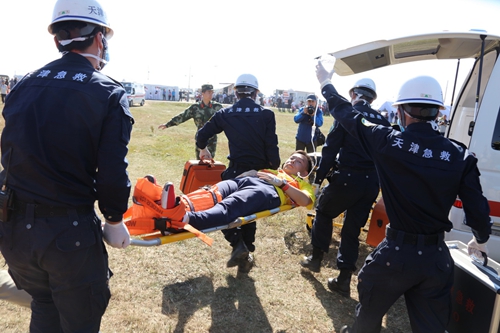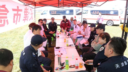 在市卫生计生委应急办的精心安排部署下,市急救中心组织有序,安排周密。中心领导亲自带队、现场指挥,全体队员服从命令,不怕苦累,京津冀三省及天津市卫生应急队伍配合密切、互帮互助。演练现场,市急救中心应急队伍现场处置紧张有序,应急队员急救技能规范娴熟,得到现场评判专家的肯定。