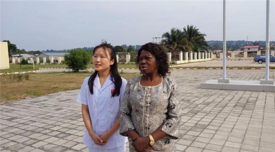 中刚友好医院院长彭吉女士发表了热情洋溢的讲话,对中国国庆节表示祝贺,并祝愿医疗队各位队员中秋节快乐,最后对中国医疗队对刚果(布)多年来的援助致以谢意。