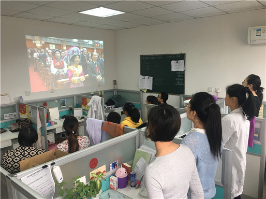 党委办公室干部张萍表示:作为一名组工干部,我深深的感到了近几年来中国历史性的发展与变化。十九大总书记做的五年报告,向我们展示了经济建设取得的重大成就,全面从严治党成效卓著,主旋律更加响亮,正能量和中华民族影响力更加提升……对于以后的中国,我充满信心,就像总书记指出的“实践没有止境,理论创新也没有止境”,在以后的工作中,要继续开拓创新,把工作的落脚点放在服务科研上。提高自律能力,进一步增强思想政治工作者的形象。以实际行动为夺取新时代中国特色社会主义伟大胜利不懈奋斗!
