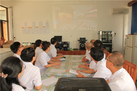 2017年10月18日上午9:00,中国共产党第十九次全国代表大会在人民大会堂开幕,习近平总书记代表第十八届中央委员会向大会作了题为《决胜全面建成小康社会夺取新时代中国特色社会主义伟大胜利》的报告。在万里之外的非洲大陆上,有一群人与我们一样,怀着激动喜悦的心情全程观看了开幕式,他们就是援加蓬第19批医疗队队员们。受当地条件局限,队员们围在食堂里唯一的投影前观看了开幕式,认真聆听报告。虽然设备简陋,总书记的身影却清晰的映在每一名队员的心中,队员们怀揣一颗颗赤诚之心,热情洋溢、内心澎湃,在支部的组织下,纷纷激动地谈及感想。