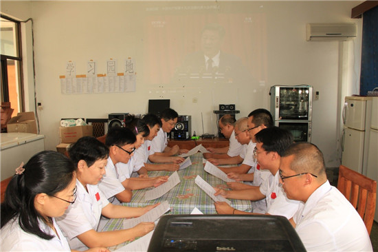 援加蓬第19批医疗队弗朗斯维尔分队长朱利民谈及观后感说道:作为有19年党龄的援非医疗队党员,我身在国外,全程观看了党十九大开幕式,心情特别激动。报告全面总结了过去五年来中国取得的成绩,让世界感觉到了中国的崛起,中国的强大,自身感到作为中国人的骄傲和自豪。作为援加蓬医疗队支部委员和分队队长,我深深地感受到在援非工作中,党员的模范带头作用和党建工作的重要性。我们将继续在工作中学习,在实践中学习,不忘初心,砥砺前行,不断突破,做一个“重担当、讲奉献、肯坚守、有作为、敢创新”的党员,保证完成国家交给我们的援非工作,树立良好的中国国际形象,为中华民族伟大复兴作出奉献一生。