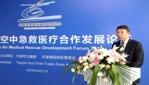2019年10月11日,2019中捷空中急救医疗合作发展论坛在天津成功举办,本次论坛也是在第五届中国天津国际直升机博览会期间举办的分论坛之一。本次论坛由天津市卫生健康委、天津港保税区管委会主办、法国ABE国际商务会展有限公司承办、捷信消费金融有限公司协办,邀请了天津市急救中心、天津市各相关三级医院的急救专家、技术骨干以及捷信公司、亚太领航(北京)紧急救援服务有限公司等相关企业代表等50余人参加。天津市卫生健康委副主任王浩、天津港保税区管委会副主任朱玉兵、捷克驻华大使馆经济处副参赞毛子宁(Barbora Kocourkova)出席了本次论坛。