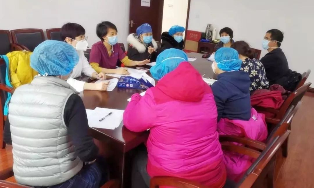▲天津医疗队召开第一次护理小组会议,呼吸与危重症医学科沈悦好(左二)作为小组组长参加了前期护理筹备会