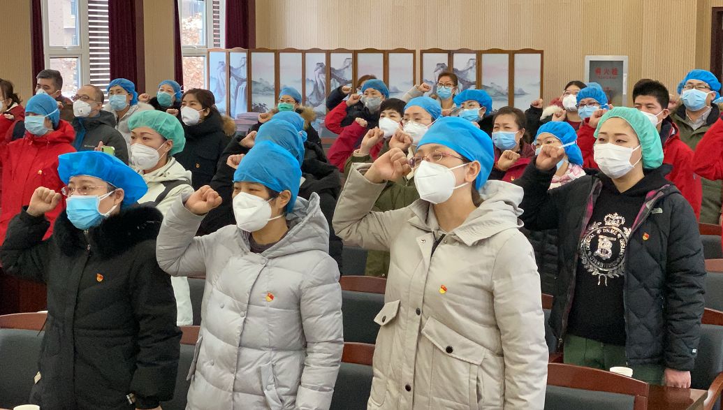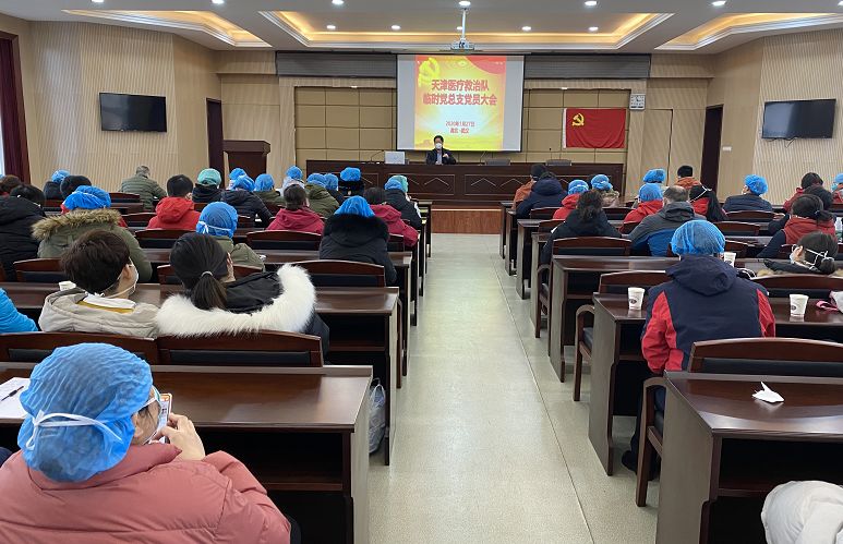 昨日下午,天津医疗救治队中80多位党员成立了临时党总支,党员们重温入党誓词,振奋士气。