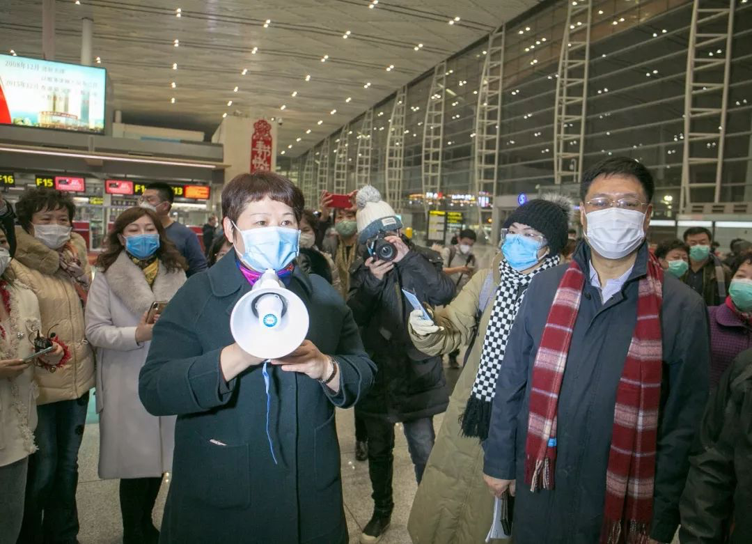 1月28日,天津市第二批支援湖北医疗队的138名医务人员陆续抵达天津滨海国际机场航站楼,集结出征,驰援武汉。市卫生健康委党委副书记、副主任韩晓芬同志到机场为第二批医疗队送行。