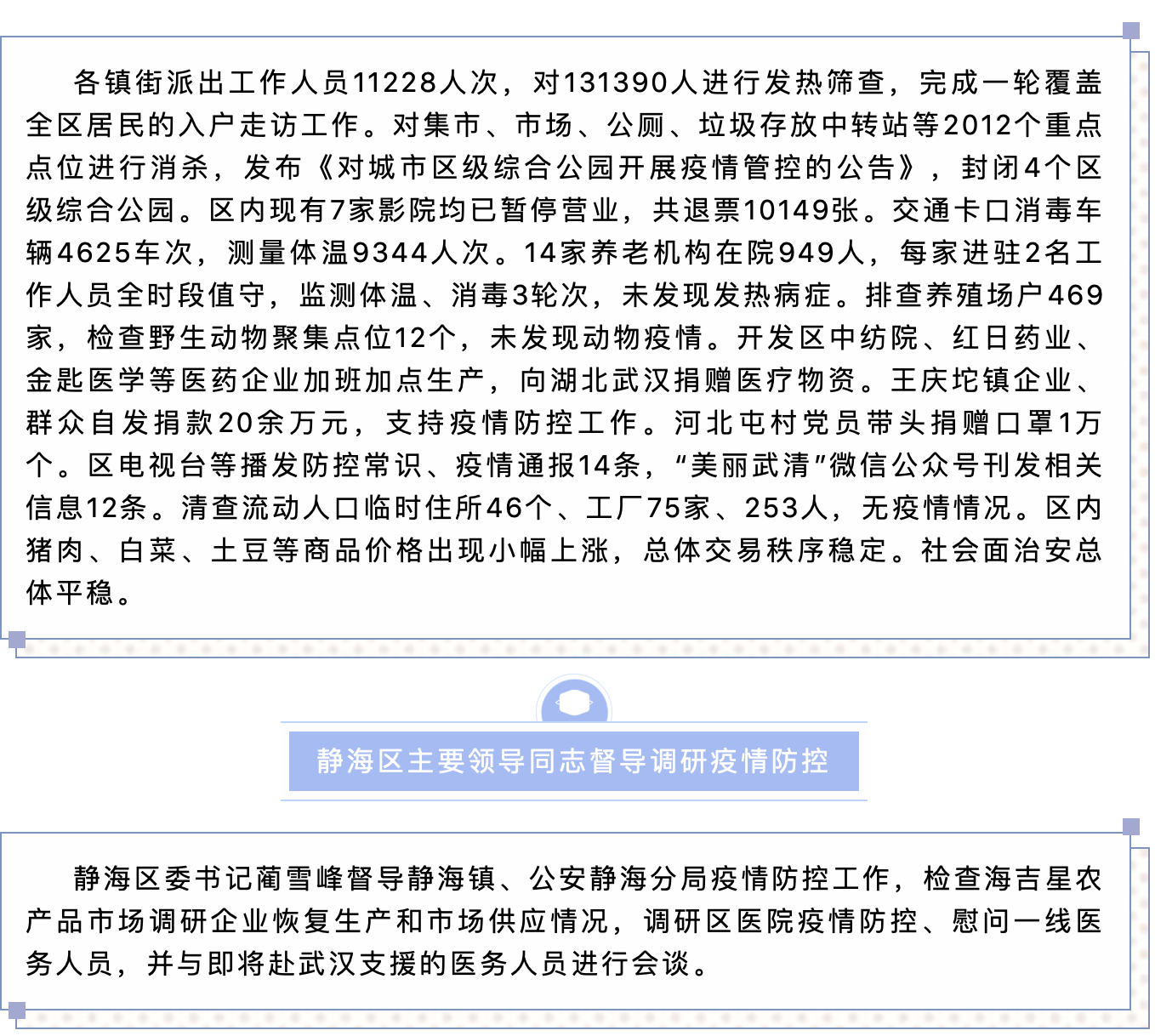 天津市各区主要领导同志督导调研疫情防控工作