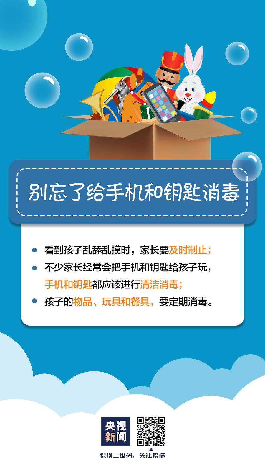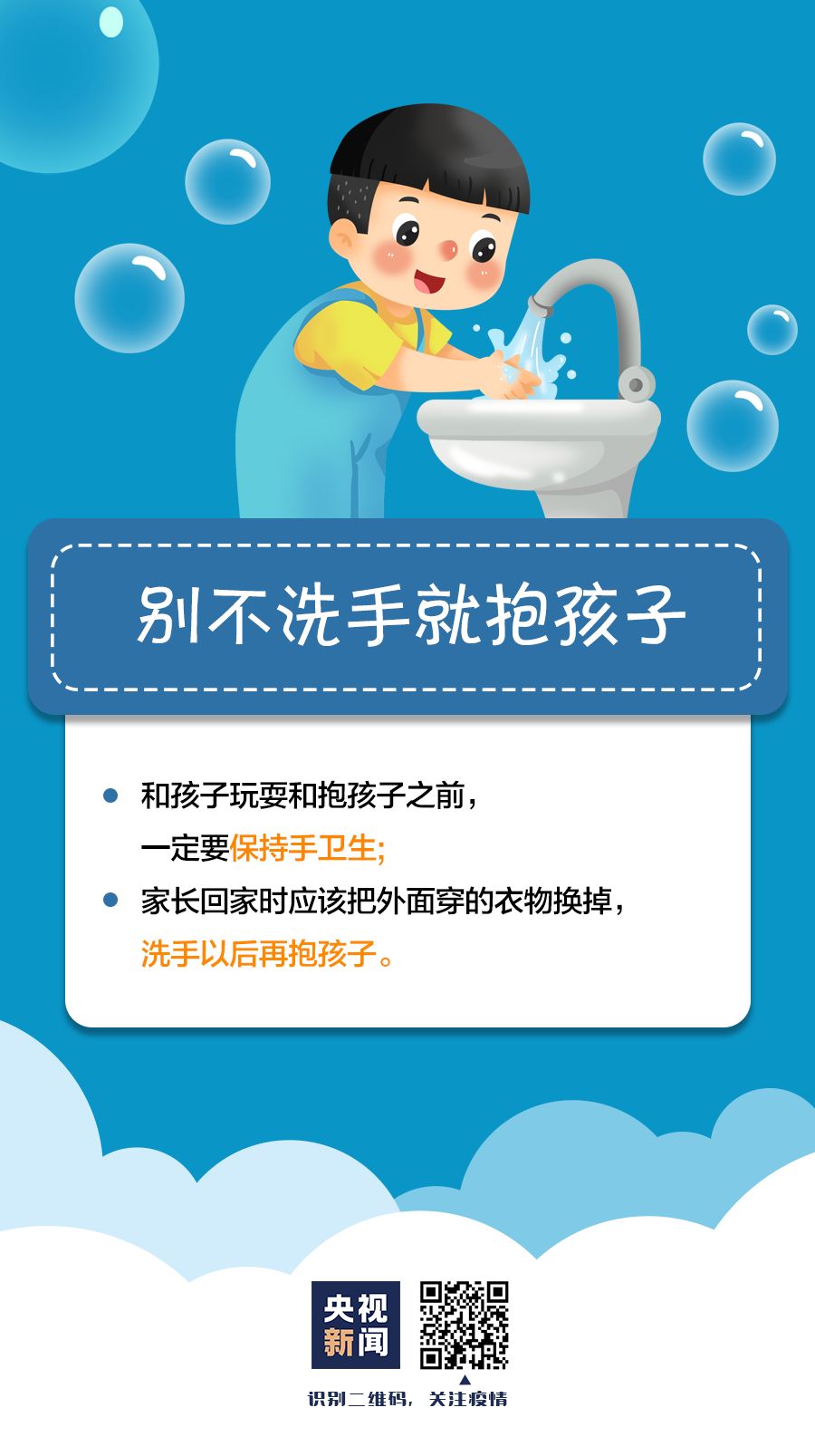 防控新型冠状病毒传播期间,儿童的防护工作备受关注。除了告诉孩子防控知识,家长在带孩子出门、跟孩子一起吃饭、和孩子玩耍时,这些事情也千万不能忽略。