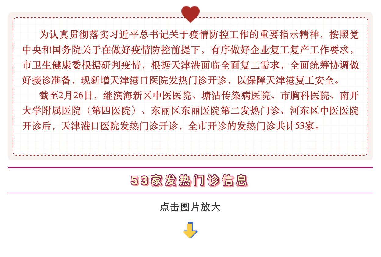 保障天津港复工安全 第53家发热门诊开诊