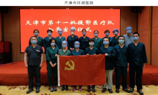 2020年3月17日15时,一场特殊的入党宣誓仪式在天津第11批支援湖北医疗队驻地武汉举行。在火线入党宣誓大会上,悠扬的国际歌回荡在会场的每一个角落。