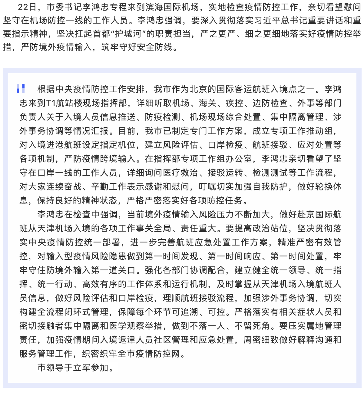李鸿忠到滨海国际机场检查指导疫情防控工作