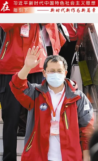 为了这一天,全国4万多名白衣战士不论生死、挺身逆行,与时间赛跑,与病魔较量,谱写了一曲惊天地、泣鬼神的新时代壮歌。它再次宣示:在这场关乎中华民族复兴伟业的没有硝烟的战争中,中国共产党领导中国人民没有屈服,也从未退缩,以一如既往的非凡勇气,击退了人类共同的敌人,终将赢得属于中国人民的荣光。