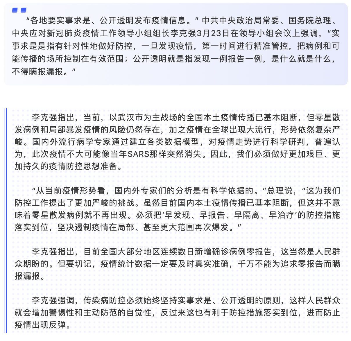 李克强:各地要实事求是公开透明发布疫情信息,不得瞒报漏报