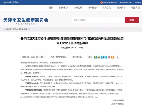 当前我市新冠肺炎疫情防控形势持续向好、生产生活秩序加快恢复的态势不断巩固和拓展。为确保我市旅行社依法依规复工营业,现将《天津市旅行社新冠肺炎疫情防控期间在本市行政区域内开展组团旅游业务复工营业工作指南》印发给你们,请结合实际认真贯彻落实,并提出如下工作要求: