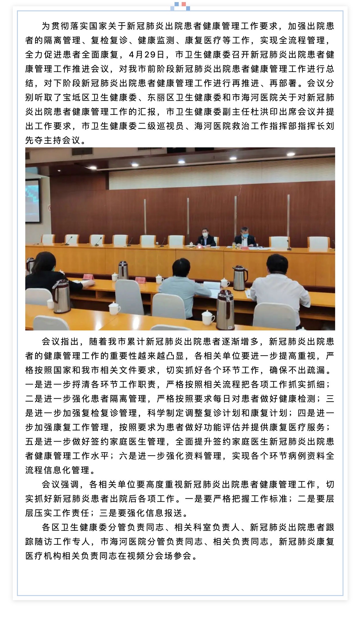 市卫生健康委召开新冠肺炎出院患者健康管理工作推进会议