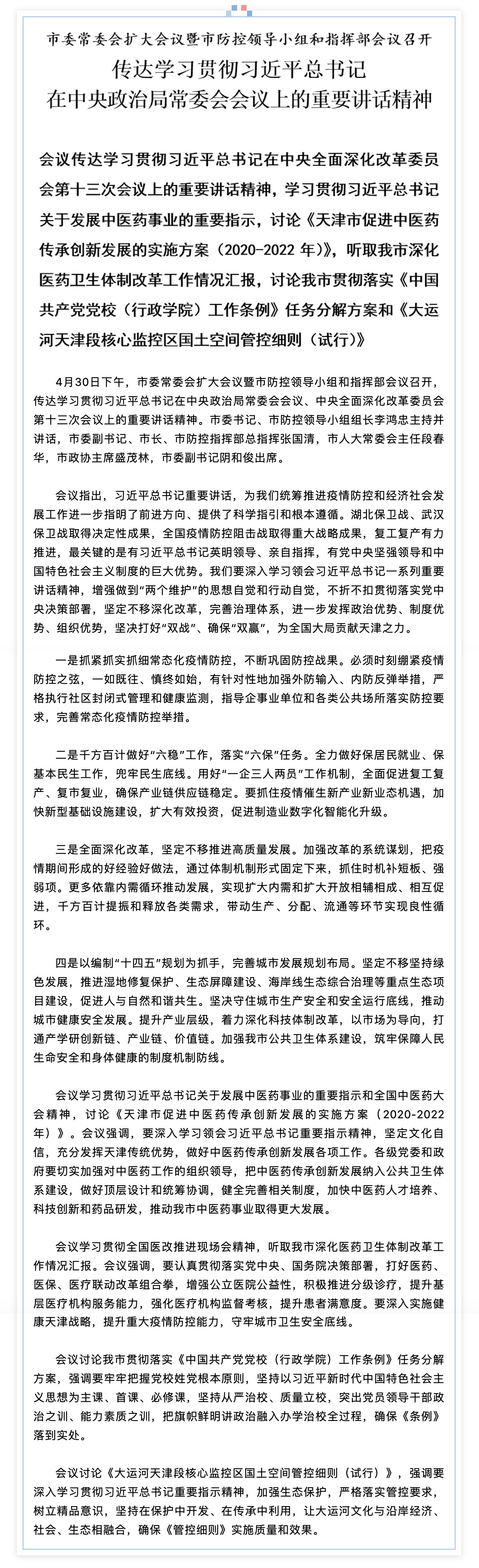 传达学习贯彻习近平总书记在中央政治局常委会会议上的重要讲话精神