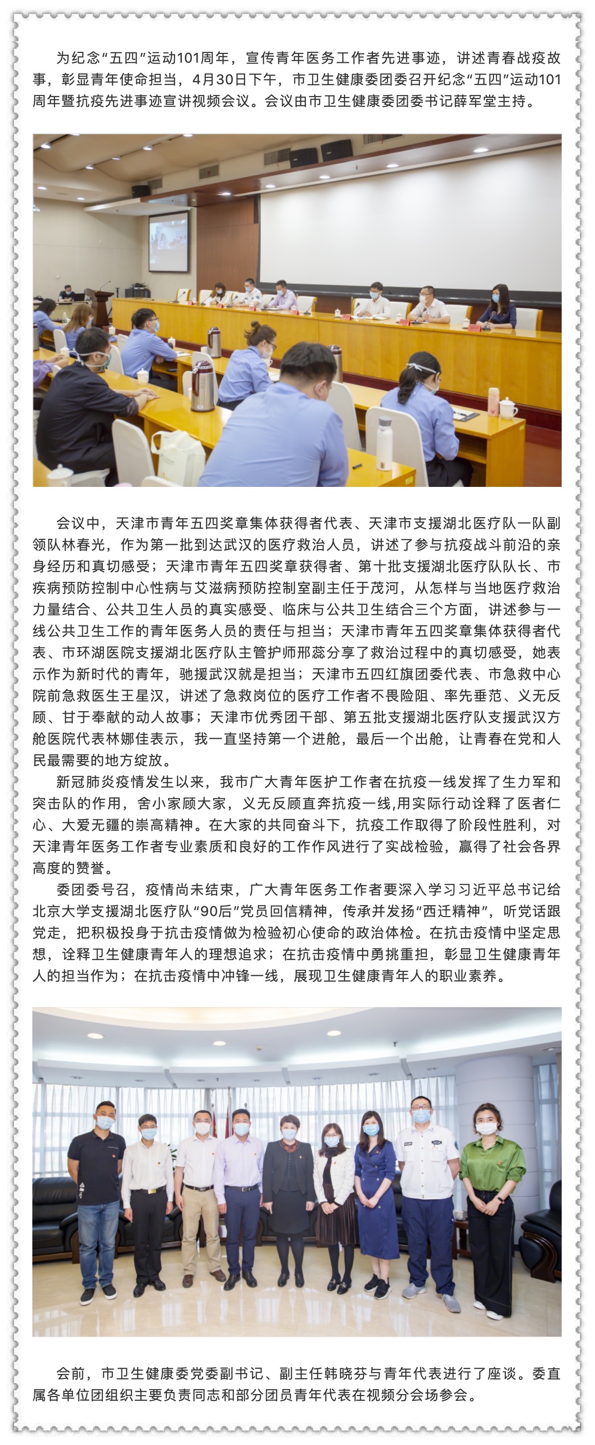 致青春共抗疫——市卫生健康委团委召开纪念“五四”运动101周年暨抗疫先进事迹宣讲视频会议