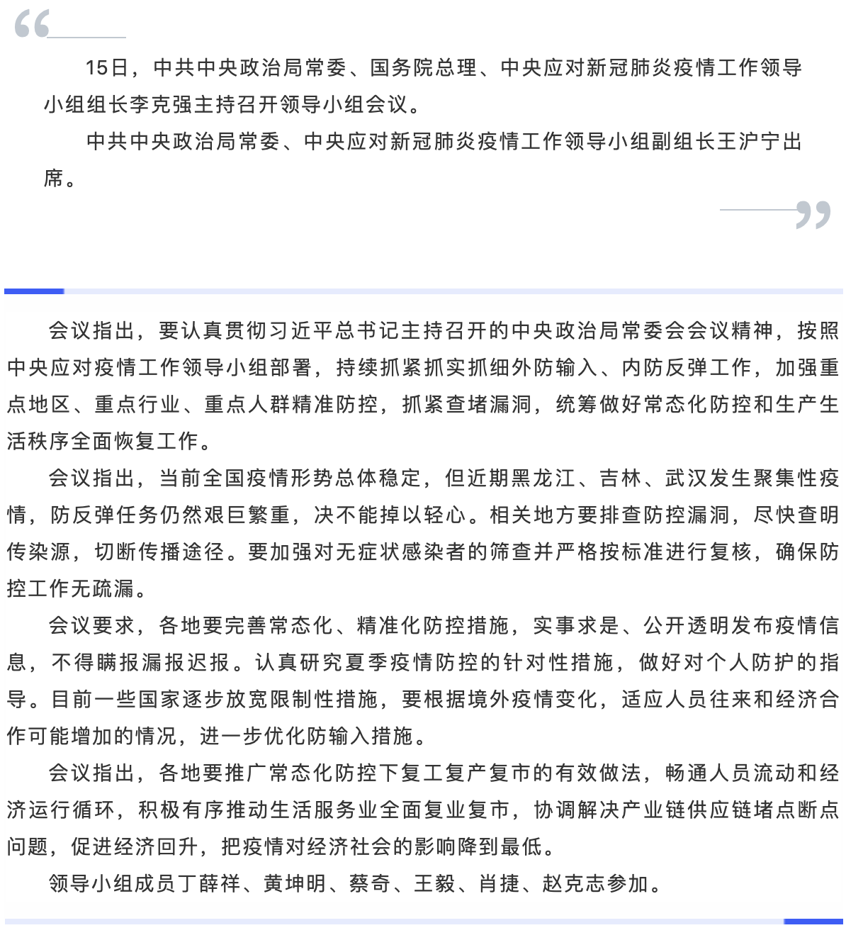 中央应对疫情工作领导小组:认真研究夏季疫情防控的针对性措施