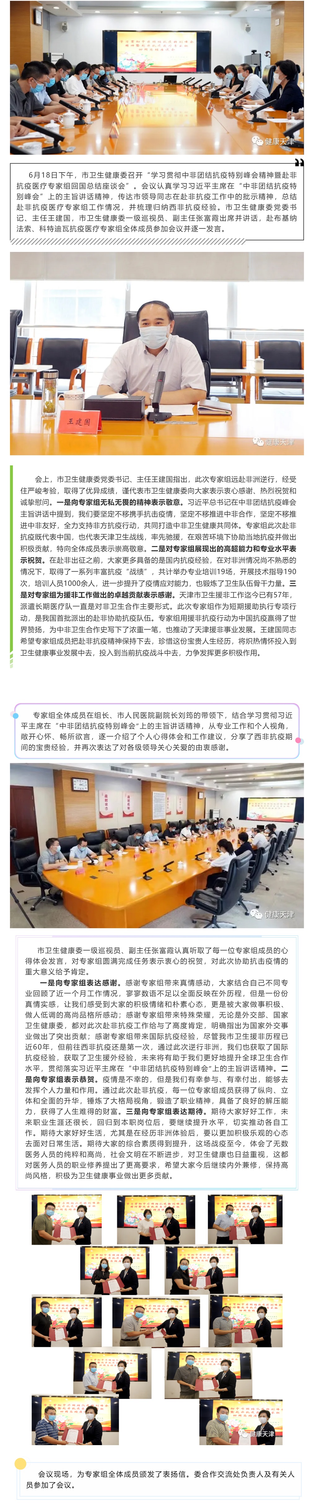 天津市卫生健康委召开“学习贯彻中非团结抗疫特别峰会精神暨赴非抗疫医疗专家组回国总结座谈会”