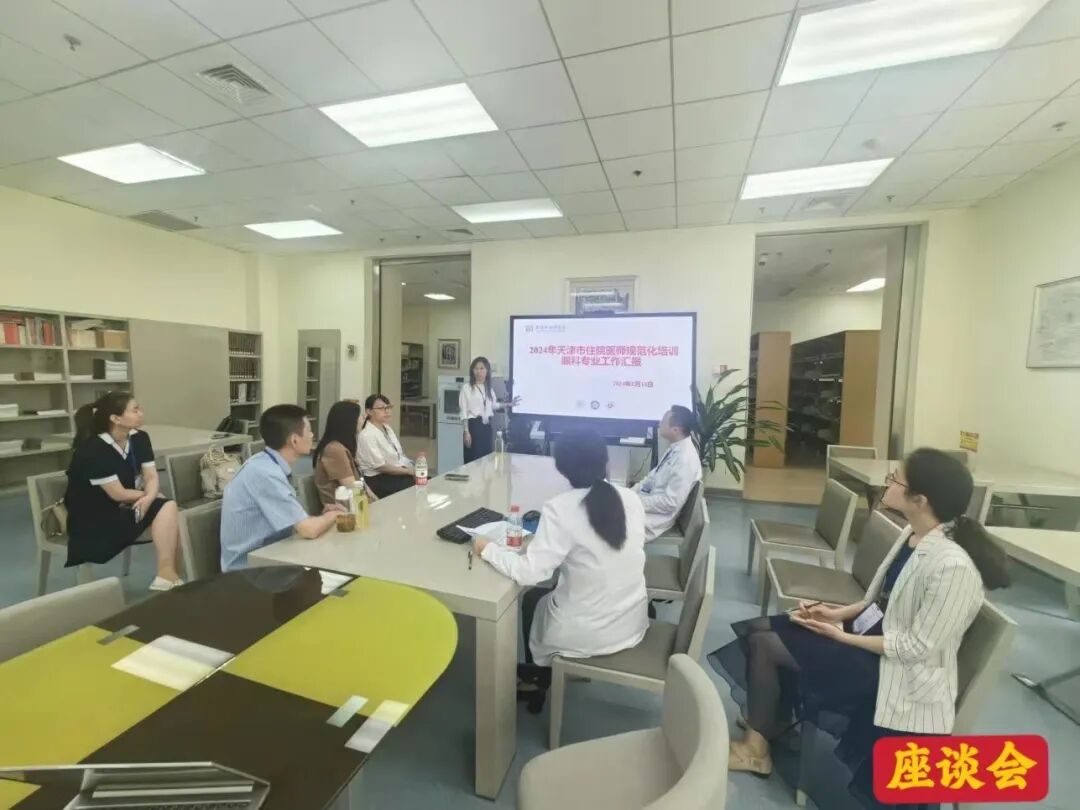 市眼科医院考点巡考后,全体人员进行了座谈,全市有眼科专业的基地包括天津医科大学总医院、天津市眼科医院、天津医科大学眼科医院,各基地有关负责同志分别汇报了眼科专业住培开展现状。我市眼科专家与国家专家详细讨论了眼科住培结业临床实践能力考核方案、要求,探讨如何更好地以考促培。