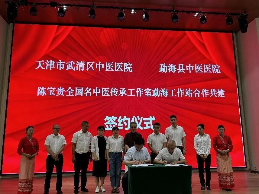 日前,全国名中医、天津市武清区中医医院名誉院长陈宝贵教授一行赴云南省西双版纳傣族自治州勐海县中医医院签订合作协议,将在勐海县中医医院建设陈宝贵全国名中医传承工作室分站。